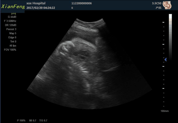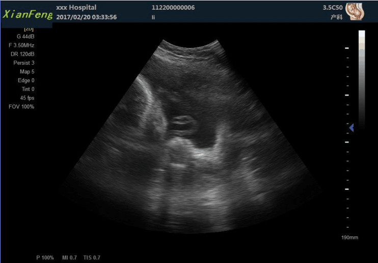 256 gambar tersedia setelah diagnosis pemutaran waktu nyata atau oleh penampil gambar, memiliki pengukuran jarak, area, keliling, HR, minggu kehamilan (BPD, GS, CRL, FL, HC, OFD, TTD, AC)