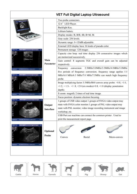 B / W Mesin Ultrasound Hewan Portabel Baterai Li Untuk Klinik Dan Rumah Sakit